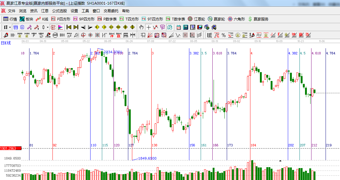 ★依據(jù)贏家江恩系統(tǒng)波段百分比延伸提示:江恩百分比0度是2160,45度位置是2125點(diǎn);