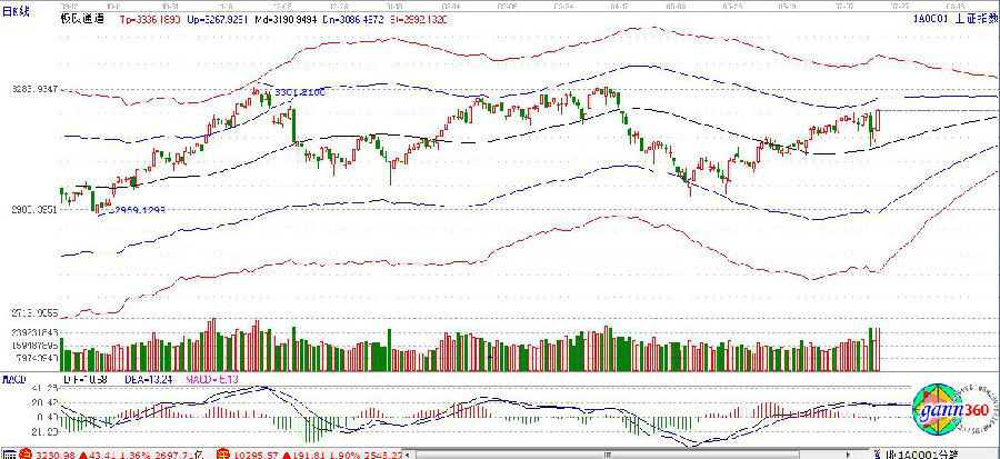 今日滬深兩市股指集體小幅低開,隨后全天一路強勢走高,沒有任何的回調走勢出現,創(chuàng)出此番行情以來的新高。創(chuàng)業(yè)板早盤雖然走勢較弱,但在滬指的帶動下,同樣進入拉升模式。煤炭、有色、券商、鋼鐵、石油礦業(yè)等權重板塊集體暴漲,漲幅均超過3%。