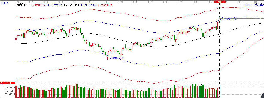 周一,滬指高開高走,強(qiáng)勢(shì)突破極反通道藍(lán)色上軌線,打開了新的上行空間,盤中最高沖擊45度線3380點(diǎn)附近,量能同比放大,但在沖高過程中五大行和一批行業(yè)龍頭股有出貨的跡象,所以,短期指數(shù)上行中或仍有反復(fù),短期不宜盲目追高。操作上,輕指數(shù)、重個(gè)股。不追高的前提下,低吸低位放量,具有業(yè)績(jī)支撐的良好標(biāo)的。