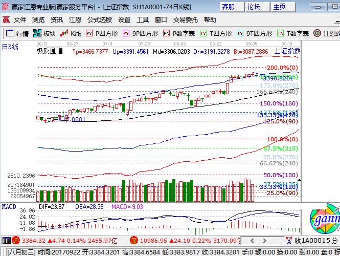 咨詢:13333833889大盤周二低開延續(xù)高位震蕩小漲0.14%,幾大指數(shù)全線紅盤,深市漲幅強于滬指。板塊方面,保險、銀行板塊大漲,煤炭、鋼鐵、有色等資源股領(lǐng)跌;題材方面,中報高送轉(zhuǎn)、鋰電和次新等漲幅居前,稀土永磁、央企改革和區(qū)塊鏈等領(lǐng)跌,科技股分化加大,個股下跌家數(shù)略多于上漲家數(shù),成交量連續(xù)三天逐步萎縮。技術(shù)方面,滬指日線不斷刷新高,K線圍繞外軌線震蕩已有6個交易日,短期15、30分鐘回撤至生命線震蕩,60分鐘在外軌線相對高位,江恩百分比315度是3370點與外軌線交叉形成盤中支撐,上方0度位置是3417點為近段阻力,波段倉位控制在4成,短線倉2成,3370、3360為日內(nèi)支撐,3400、3410為日內(nèi)壓力。僅供參考,不構(gòu)成任何投資建議。