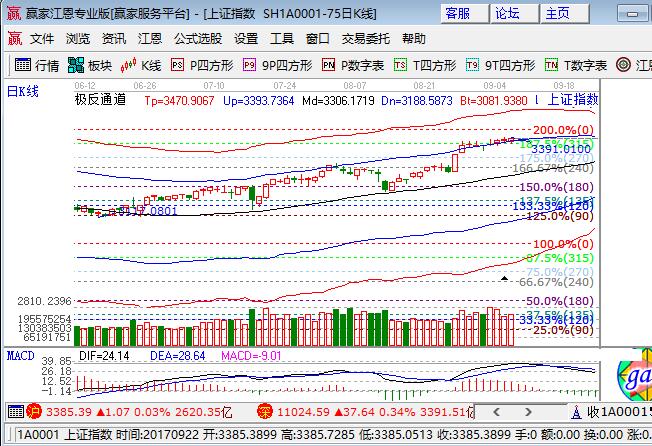 咨詢:13333833889周三大盤低開延續(xù)高位震蕩微漲,早盤走勢較弱,午盤創(chuàng)業(yè)板帶動下回升,幾大指數(shù)全線收紅。板塊方面,僅石油表現(xiàn)較好,保險、銀行、券商等板塊領跌;題材方面,鋰電、芯片、石墨烯和云計算領漲,雄安概念走勢較弱,次新股依然走分化行情,上漲個股家數(shù)略,成交量較前日有所放大。技術方面,滬指日線不斷刷新高,日K線早盤在極反通道外軌線下運行,下午紅盤在線上運行,短期15、30分鐘在生命線上附近運行,60分鐘生命線逐漸抬高至3350附近,江恩百分比315度是3370點與外軌線交叉形成盤中支撐,上方0度位置是3417點為近段阻力,波段倉位控制在4成,短線倉2成,3370、3360為日內支撐,3400、3410為日內壓力。僅供參考,不構成任何投資建議。