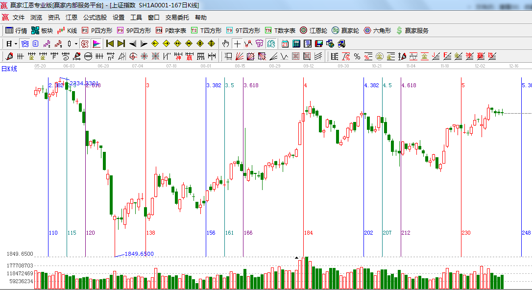 ★依據(jù)贏家江恩系統(tǒng)黃金時(shí)間周期線提示:17號(hào)為黃金分割的0.382的位置,重點(diǎn)觀察日線k線形態(tài);