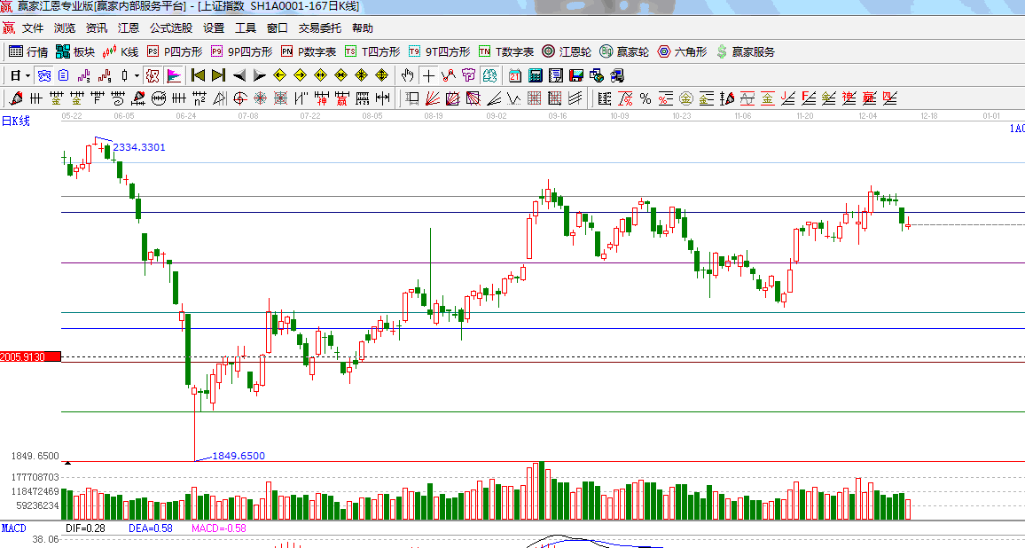 ☆依據(jù)贏家江恩系統(tǒng)波段百分比提示:跌破62.5%與66.67%區(qū)間,50%的位置是2150;
