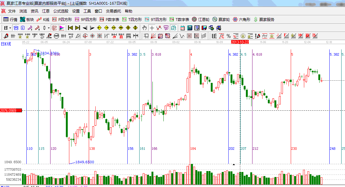 ★依據(jù)贏家江恩系統(tǒng)黃金時間周期線提示:17號為黃金分割的0.382的位置,重點觀察日線k線形態(tài);
