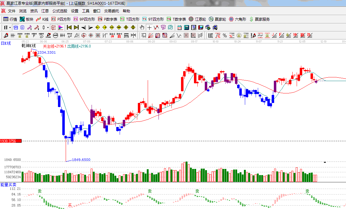 ★依據(jù)贏家江恩系統(tǒng)乾坤K線提示: K線顏色紅轉(zhuǎn)紫,多空博弈加大,等待信號(hào)的明確 ;
