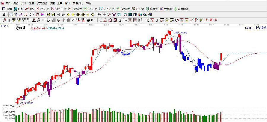 ☆依據(jù)贏家江恩理論系統(tǒng)極反通道提示:周二,滬指高開高走,直接拉升至日線生命線,接下來,關(guān)注生命線的爭奪,生命線價格是3345點。依據(jù)規(guī)則,日線生命線之上波段看多,之下短期弱勢震蕩為主。