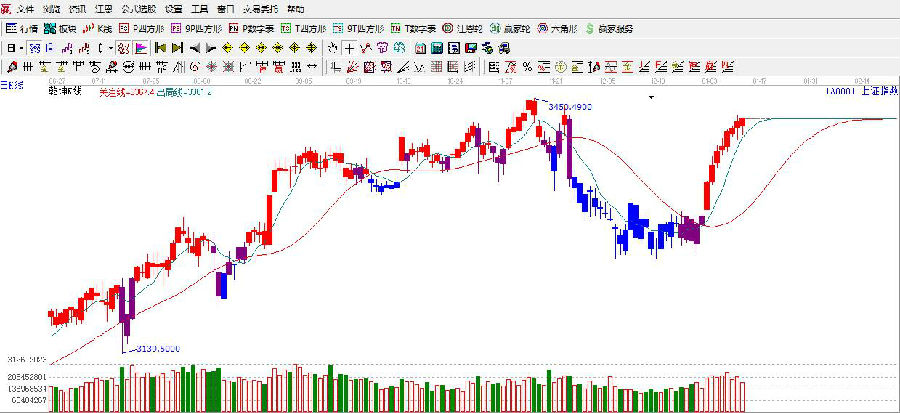 ☆依據(jù)贏家江恩理論系統(tǒng)極反通道提示:周三,滬指在60分藍(lán)色外軌線震蕩整理,外軌線阻力是3430附近,30分生命線支撐3400點(diǎn),日線生命線3350點(diǎn)附近,依據(jù)規(guī)則,日線生命線之上,中期趨勢(shì)向上為主。