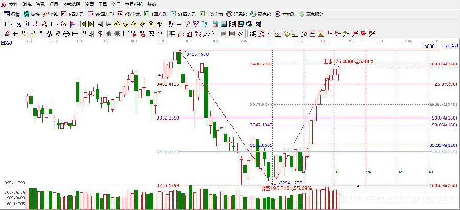★依據(jù)贏家江恩理論系統(tǒng)江恩波段百分比提示:滬指盤中再次回踩90度3400附近后回升,短線支撐依舊是3401點(diǎn),以及240度3380附近。阻力位關(guān)注百分比45度線3425點(diǎn)附近。