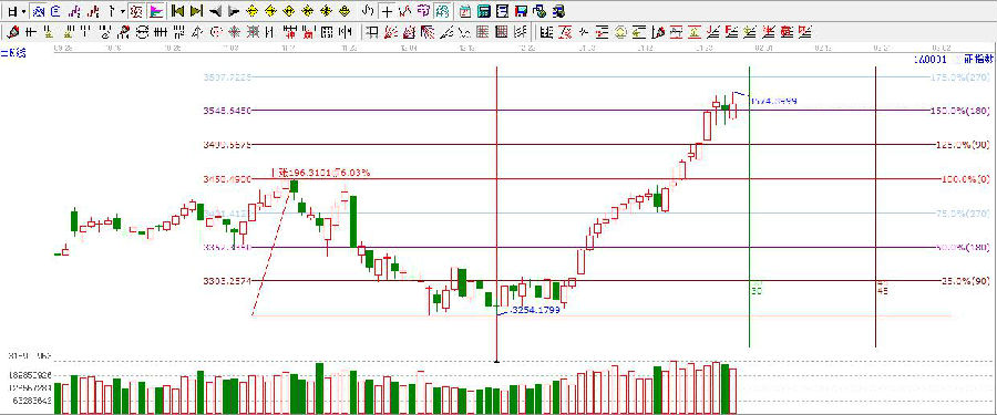 ★依據(jù)贏家江恩理論系統(tǒng)乾坤K線提示:滬指依舊處于紅色可操作區(qū)域,依據(jù)規(guī)則,出局線之上,繼續(xù)維持多頭。