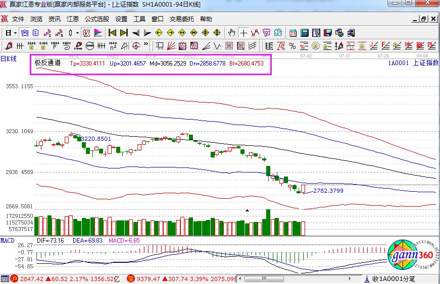 滬指漲2.17%,報收2847點(diǎn);深成指漲3.39%,報收9379點(diǎn);創(chuàng)業(yè)板漲4.08%,報收1606點(diǎn)。從盤面上看,國產(chǎn)軟件、網(wǎng)絡(luò)安全、云計算、半導(dǎo)體、分散染料、數(shù)字中國、工業(yè)互聯(lián)網(wǎng)等板塊漲幅居前。相應(yīng)的極反通道指標(biāo)的支撐壓力提示,如下圖所示:
