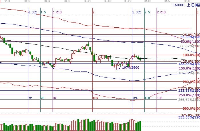 指數(shù)目前整體趨勢處于生命線之下,指數(shù)在江恩90度支撐附近止跌,小陰星報收,此位置不破,將有小幅反抽,后期能否放量突破生命線是反彈的關鍵。本周時間窗4月1日,倉位控制3-5成左右,僅供參考,不構成任何投資建議。
