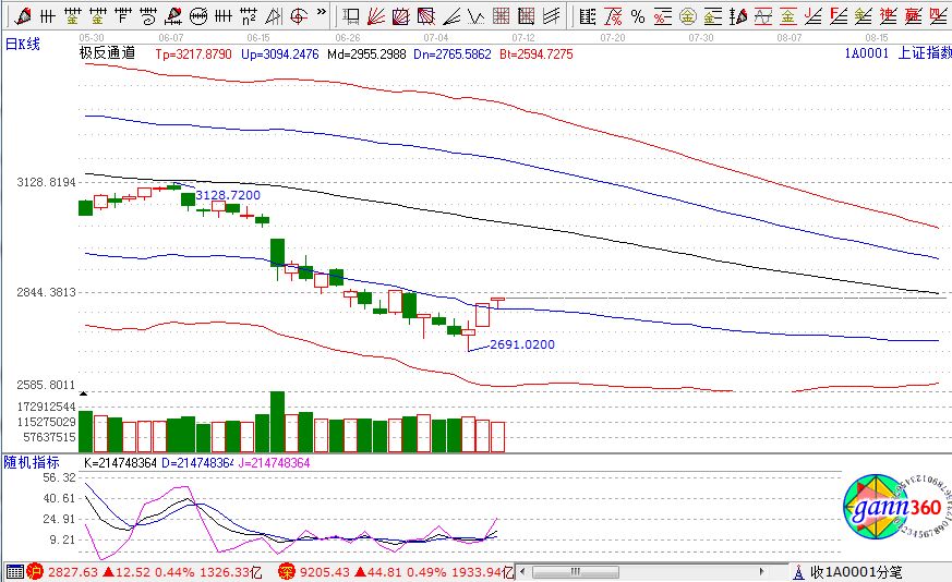 滬指漲0.44%,報2827點;深成指漲0.49%,報9205點;創(chuàng)業(yè)板指漲0.70%,報1592點。盤面上看,高送轉(zhuǎn)、次新股、水泥、石油開采、機場航運、鈦白粉、鋼鐵等板塊漲幅居前;農(nóng)業(yè)股、國產(chǎn)軟件、網(wǎng)絡(luò)安全、互聯(lián)網(wǎng)彩票、銀行、保險等板塊跌幅居前。滬股通凈流入5億,深股通凈流入2.6億。相應(yīng)的極反通道指標(biāo)的支撐壓力提示,如下圖所示: