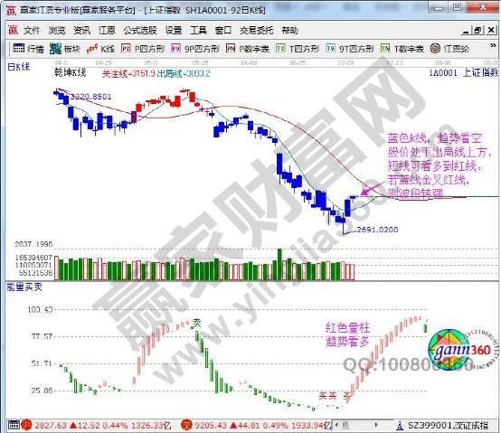 ☆依據(jù)贏家江恩理論系統(tǒng)乾坤K線提示:藍色K線,波段趨勢仍為空;股價處于出局線上方,短線看多到紅線。波段仍需等待藍線金叉紅線,才是轉(zhuǎn)強信號。