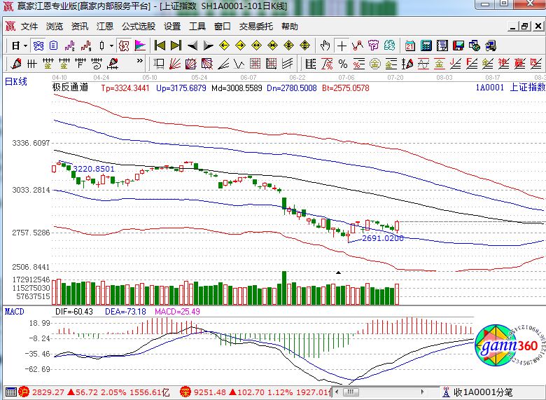 滬指漲2.05%,報收2829點;深成指漲1.12%,報收9251點;創(chuàng)業(yè)板漲1.23%,報收1609點。從板塊漲幅上看,銀行、保險、國產軟件、證券、數字中國、燃氣水務、工業(yè)互聯(lián)網等板塊上漲;在線旅游、養(yǎng)殖等少數板塊下跌。滬股通凈流入5.5億,深股通凈流入17億。相應的極反通道指標的支撐壓力提示,如下圖所示: