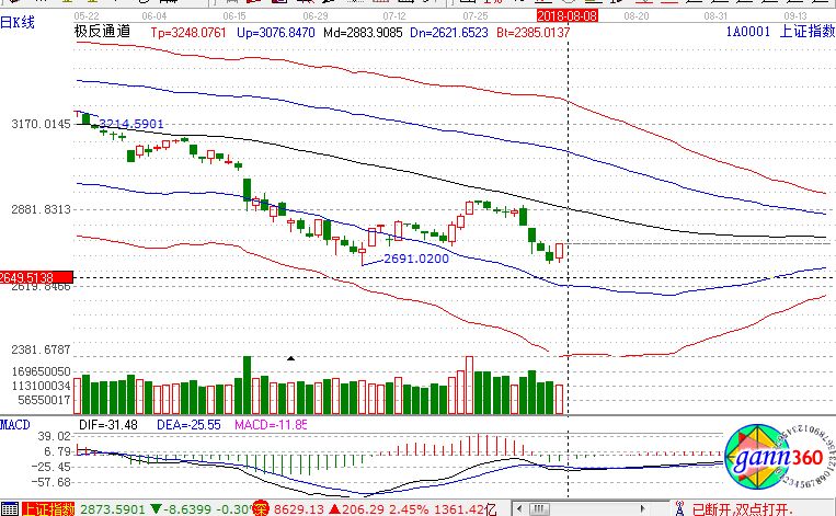 截止收盤,滬指漲2.74%,報2779點;深成指漲2.98%,報8674點;創(chuàng)業(yè)板指漲2.68%,報1479點。盤面上看,石油采掘、磷化工、水泥、頁巖氣、高鐵、中字頭股票、數(shù)字中國等板塊上漲。滬股通凈流入21億,深股通凈流入10億。相應(yīng)的極反通道指標的支撐壓力提示,如下圖所示: