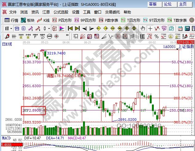 ☆依據(jù)贏家江恩理論系統(tǒng)乾坤K線提示:藍色K線收盤在短線出局線上方,紅色關(guān)注線2825為阻力,短線謹慎看多、波段看空。