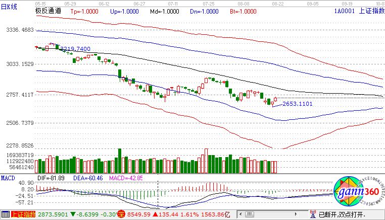 截至收盤(pán),滬指漲1.31%,報(bào)2733點(diǎn);深成指漲1.60%,報(bào)8549點(diǎn);創(chuàng)業(yè)板指漲1.48%,報(bào)1456點(diǎn)。從盤(pán)面上看,醫(yī)藥電商、機(jī)場(chǎng)航運(yùn)、造紙、白酒、食品飲料、ST板塊等板塊上漲;高送轉(zhuǎn)、鋼鐵、碳纖維等少數(shù)板塊下跌。滬股通凈流入18億,深股通凈流入11億。相應(yīng)的極反通道指標(biāo)的支撐壓力提示,如下圖所示: