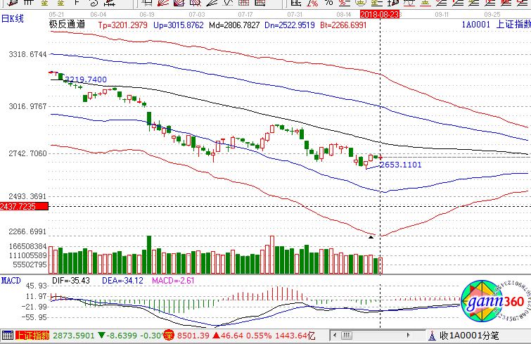 從盤面上看,高送轉(zhuǎn)、農(nóng)業(yè)服務(wù)、國(guó)產(chǎn)軟件、網(wǎng)絡(luò)安全、5G、次新股等板塊上漲;煤炭、鋼鐵、機(jī)場(chǎng)航運(yùn)、水泥等板塊下跌。滬股通凈流入9億,深股通凈流入5.6億。相應(yīng)的極反通道指標(biāo)的支撐壓力提示,如下圖所示: