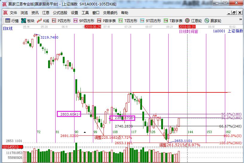 江恩看盤綜述:通過江恩理論系統(tǒng)趨勢、時(shí)間、價(jià)格工具綜合評判市場三星看多(五星評級標(biāo)準(zhǔn))。周一滬指強(qiáng)勢反彈直逼2800一線,此位置為日線生命線壓力,30分鐘藍(lán)線壓力,波段百分比50%壓力,則短線應(yīng)重點(diǎn)關(guān)注此位置,周二不能強(qiáng)勢突破,短線將大概率回落整理,操作上不要追高,手中個(gè)股結(jié)合壓力點(diǎn),獲利兌現(xiàn)為主。短線不破2740仍可精選個(gè)股把握交易機(jī)會。進(jìn)入9月,市場會更加明朗,波段底倉安心持有,生命線附近整理后突破走強(qiáng),將是新的加倉機(jī)會。