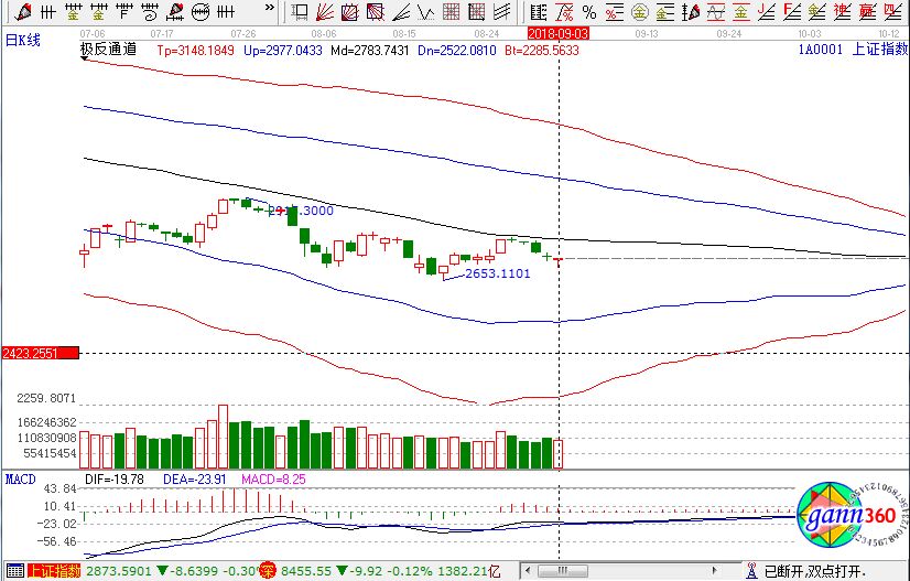 滬指跌0.17%,報(bào)收2720點(diǎn);深成指跌0.12%,報(bào)收8455點(diǎn);創(chuàng)業(yè)板漲0.59%,報(bào)收1443點(diǎn)。從盤面上看,電子發(fā)票、軍工、養(yǎng)殖業(yè)、國產(chǎn)軟件、食品安全、新疆、互聯(lián)網(wǎng)彩票等板塊漲幅幅居前;高送轉(zhuǎn)、機(jī)場(chǎng)航運(yùn)、5G、ST板塊、汽車整車、電子制造等板塊跌幅居前。滬股通凈流出1.7億,深股通凈流入5.8億。相應(yīng)的極反通道指標(biāo)的支撐壓力提示,如下圖所示: