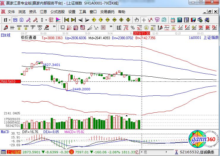滬指跌1.32%,報收2567點;深成指跌2.06%,報收7597點;創(chuàng)業(yè)板跌2.11%,報收1312點。盤面上看,證券、高送轉、海南、5G、次新股、互聯網彩票等板塊跌幅居前。滬股通凈流入16億,深股通凈流出1.6億。相應的極反通道指標的支撐壓力提示,如下圖所示: