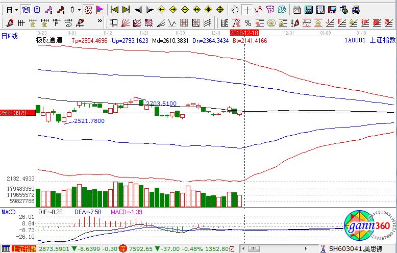 盤面上看,深圳國改股、裝配式建筑、創(chuàng)投、次新股、水泥等板塊漲幅居前;醫(yī)藥電商、啤酒、高送轉、賽馬、機場航運、細胞免疫治療等板塊跌幅居前。滬股通凈流入11.8億,深股通凈流入3.4億。相應的極反通道指標的支撐壓力提示,如下圖所示: