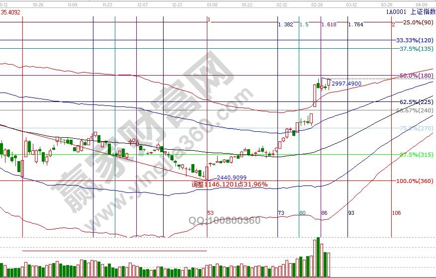 大盤時(shí)隔48周重回生命線上代表波段轉(zhuǎn)多,日線脫離極反通道在線外運(yùn)行,極強(qiáng)狀態(tài)運(yùn)行終需有回歸通道需求,月線生命線3060點(diǎn)是強(qiáng)壓,空間點(diǎn)位上,江恩輪中輪、價(jià)格四方形顯示,3031、3051為盤中壓力,2961、2944點(diǎn)為支撐,7號(hào)為時(shí)間窗口。操作策略,大盤維持日線震蕩,持股上享受瘋狂的同時(shí)不斷提高止賺位,即保護(hù)了利潤又可將利潤最大化,短線開倉跟蹤15分鐘生命線得失,整體倉位持在6成左右。