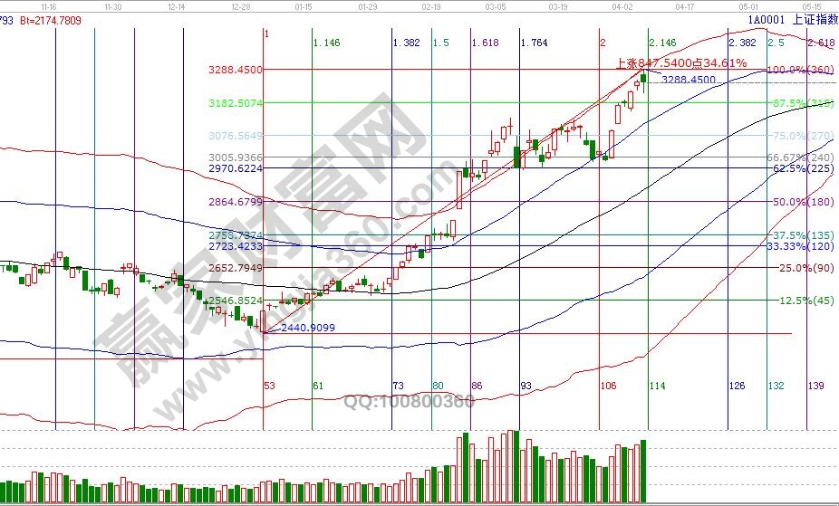 大盤日K線如期按規(guī)則站穩(wěn)一線看高一線,從極反通道藍(lán)色上軌線反攻到紅色外軌線,上周分析中已談到,指數(shù)本周進(jìn)入日線時(shí)間窗口周期,同時(shí)到達(dá)紅色外軌線走勢(shì)將轉(zhuǎn)反復(fù),但整體震蕩上攻趨勢(shì)未改變;空間方面,波段百分比延伸線3倍循環(huán)180度3360接近,江恩輪中輪135度是3356點(diǎn)【3350附近是多周期共振位,短線、波段均是風(fēng)險(xiǎn)大于機(jī)會(huì)】,短期壓力是3261、3283點(diǎn),短期支撐3228、3196點(diǎn);時(shí)間方面,本周是4月時(shí)間窗口密集區(qū)間,8-15號(hào)跟蹤與紅色外軌線關(guān)注。操作策略,日線超強(qiáng)通道運(yùn)行,穩(wěn)健者倉(cāng)位保持在5成,激進(jìn)者倉(cāng)位保持在7成,靠近紅色外軌線持倉(cāng)遵守提高止賺位分批獲利。