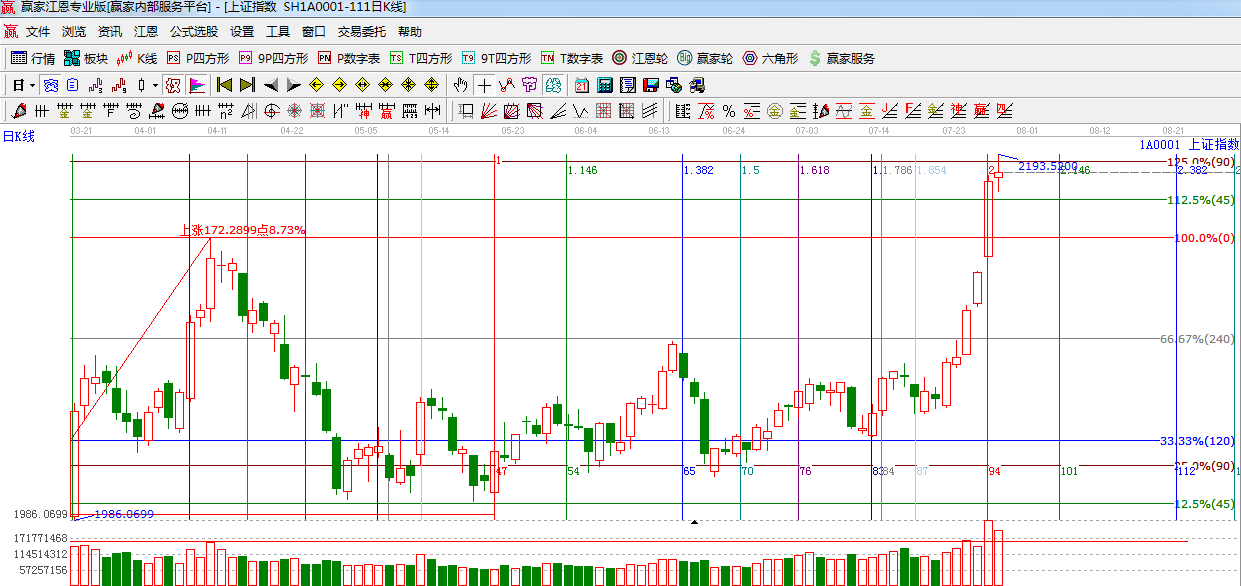 ☆依據(jù)贏家江恩系統(tǒng)黃金時間周期線提示:7月28日是前期提到的時間窗口,短期下一時間窗口是8月06日