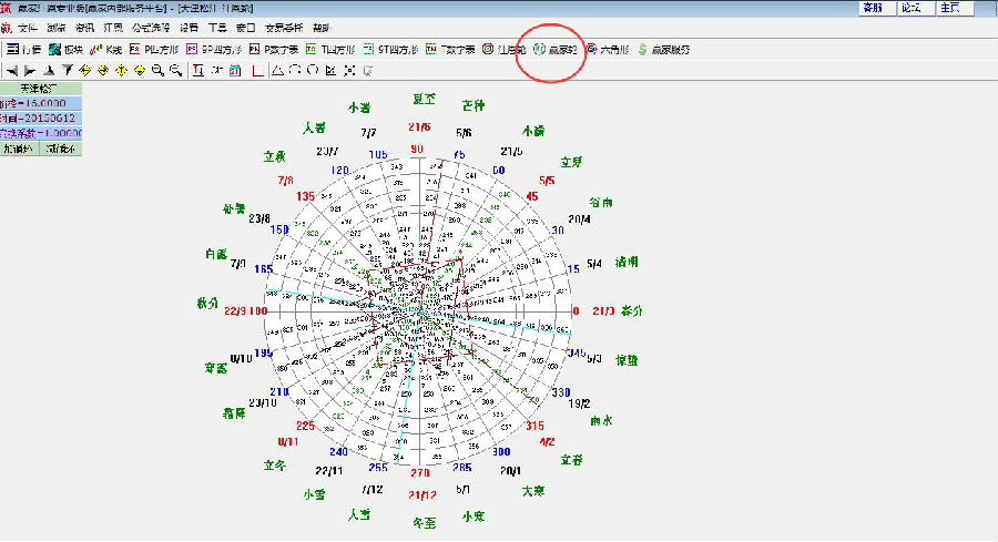 在江恩輪中輪工具將角度線與價格百分比相結合,下圖中圓形的360度劃分,其實就是角度線,在一些重要的角度線上的數(shù)字,它往往是能夠形成重要的頂部或是底部或是時間轉折點,一般來講,最重要的角度線有0度、90度、180度等等。