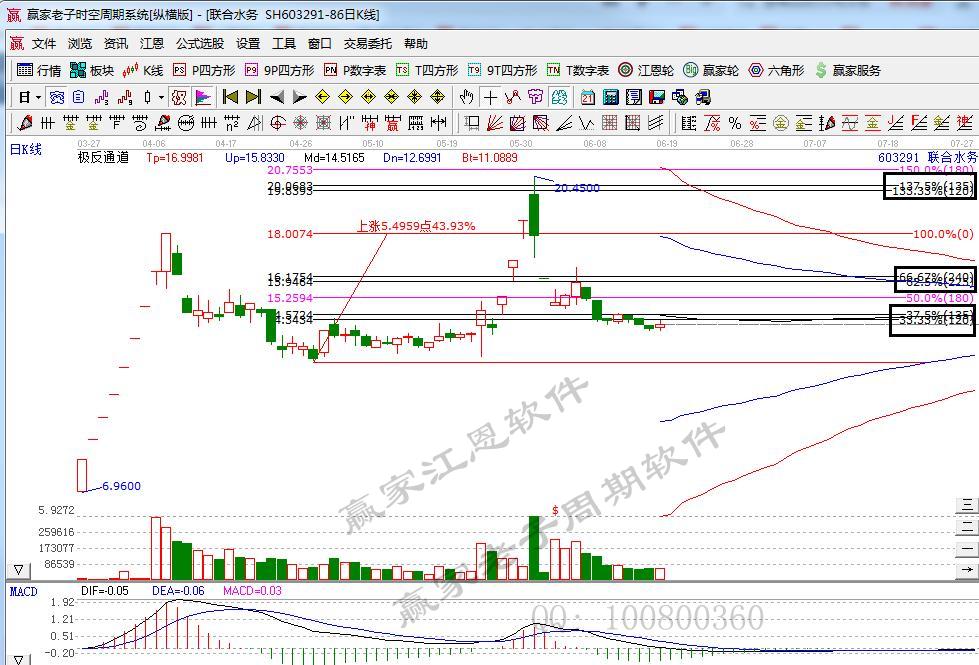 以603291聯(lián)合水務(wù)為例,符合工具規(guī)則,買之前的操作策略:江恩百分比三分位33.33%(1/3=120°)站穩(wěn),且突破關(guān)鍵50%(4/8=180°)抄進(jìn),目標(biāo)設(shè)定下個三分位,運行一個完整循環(huán),同時又是極反通道紅外軌共振目標(biāo)。由此展開跟蹤應(yīng)對。