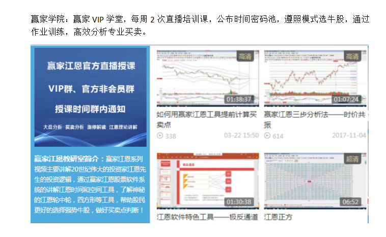 贏家培訓(xùn)班,以系統(tǒng)的國學(xué)知識、江恩知識為理論基礎(chǔ)、以《江恩理論---實戰(zhàn)應(yīng)用體系》一書為教學(xué)藍(lán)本、以"贏家老子時空周期證券分析軟件"為專業(yè)工具、以"贏家江恩VIP教研室"為學(xué)習(xí)平臺,通過持續(xù)不斷的實戰(zhàn)應(yīng)用學(xué)習(xí),幫助學(xué)員解決3大操作難題:1.如何選出強(qiáng)勢好股;2.如何計算買賣位置;3.如何預(yù)測時間變盤點,從專業(yè)視角解讀市場,提前做好交易計劃。同時,結(jié)合資金管理和心態(tài)紀(jì)律培訓(xùn),克服人性弱點,打造專業(yè)的散戶,真正做到順勢而為,在股市中持續(xù)穩(wěn)健的獲利。