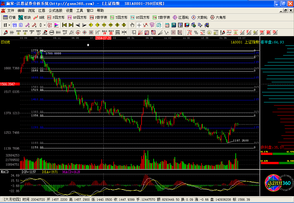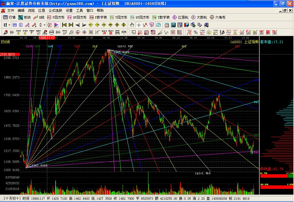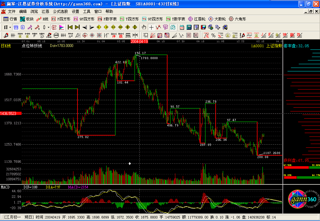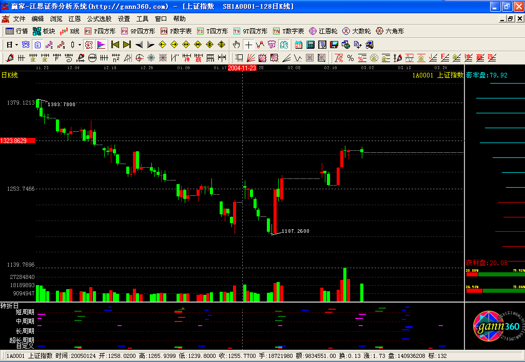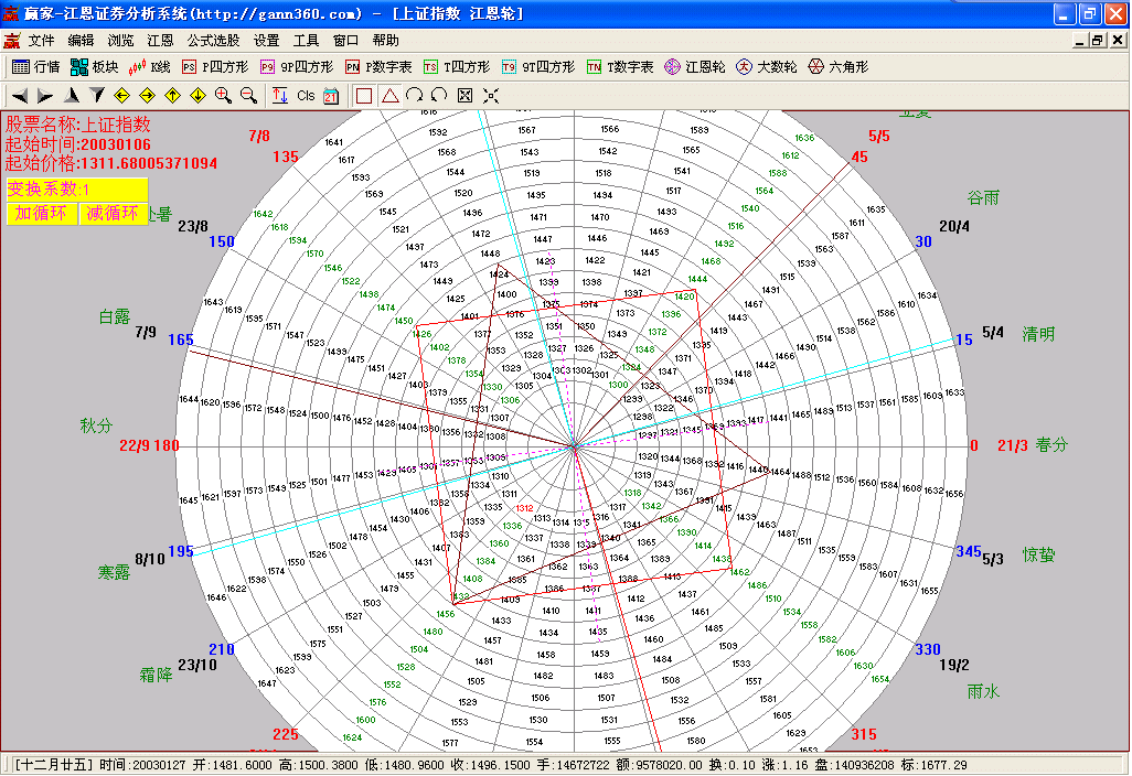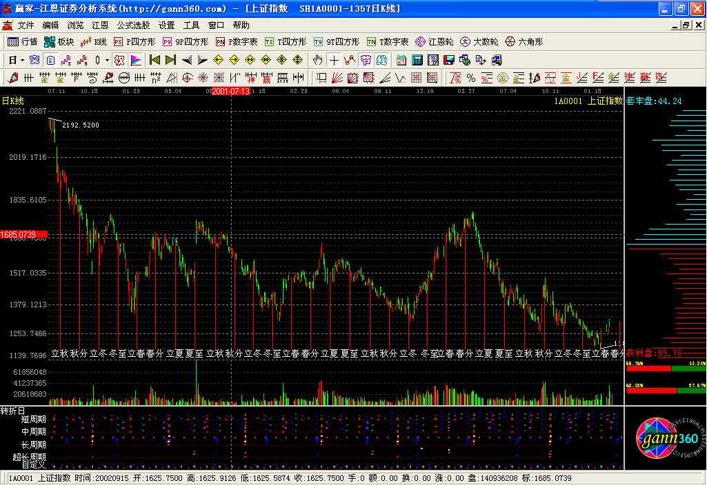 贏家江恩證券分析系統(tǒng),1999年研發(fā)問世,迄今22年,專注技術(shù)分析,專注江恩理論研究,專注散戶一整套股市盈利體系的構(gòu)建。該系統(tǒng)基于一整套的江恩理論設(shè)計(jì)研發(fā),適用于股票、期貨、外匯等市場(chǎng),其分析方法獨(dú)特、分析指標(biāo)獨(dú)創(chuàng),一切遵從自然法則。軟件除實(shí)現(xiàn)了江恩經(jīng)典測(cè)市工具,如江恩輪、正方形、六角形、角度線、江恩計(jì)算器、時(shí)間及價(jià)格循環(huán)線等之外,還依據(jù)贏家團(tuán)隊(duì)多年的研究開發(fā)了許多極具實(shí)戰(zhàn)價(jià)值的工具和指標(biāo),如極反通道、24節(jié)氣、轉(zhuǎn)折日提示等。