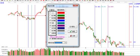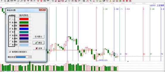 7.工具編輯。把鼠標(biāo)移動(dòng)到所選起點(diǎn)的位置,鼠標(biāo)會(huì)變成十字狀,點(diǎn)擊右鍵-編輯黃金時(shí)間延伸線,出現(xiàn)如下圖,可根據(jù)自己的經(jīng)驗(yàn)需求,留下你認(rèn)為重要的分割位,點(diǎn)擊確定即可。經(jīng)常用的設(shè)為默認(rèn)。